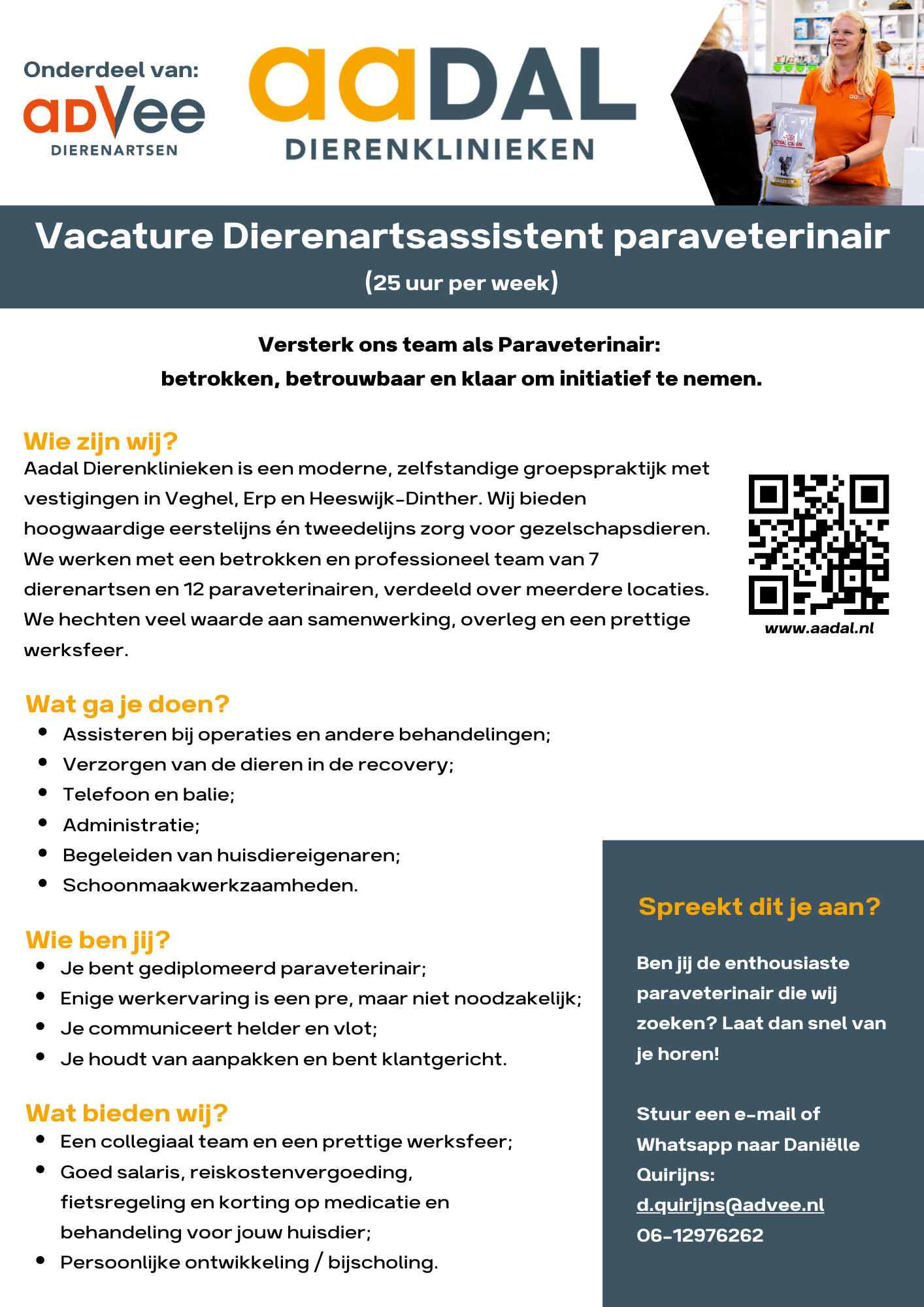 Ben jij een toegewijde paraveterinair die op zoek is naar een nieuwe uitdaging? Dan zijn wij op zoek naar jou!